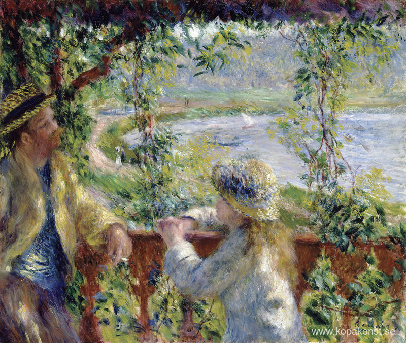 Vi erbjuder dig en hantverksmässig reproduktion på duk av det berömda konstverket 'Vid vattnet (nära sjön)' av Pierre-Auguste Renoir, från Reproduktionsmuseet.