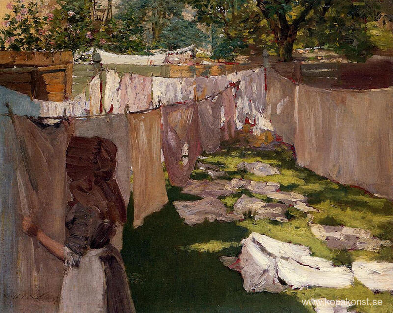 Vi erbjuder dig en hantverksmässig reproduktion på duk av det berömda konstverket 'Wash Day - A Back Yard Reminiscens of Brooklyn' av William Merritt Chase, från Reproduktionsmuseet.