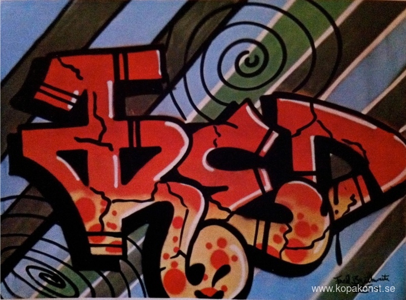 Vi erbjuder dig en hantverksmässig reproduktion på duk av det berömda konstverket 'Fred' av Fab 5 Freddy, från Reproduktionsmuseet.