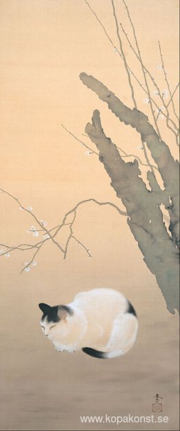 Katt och plommon blommar
