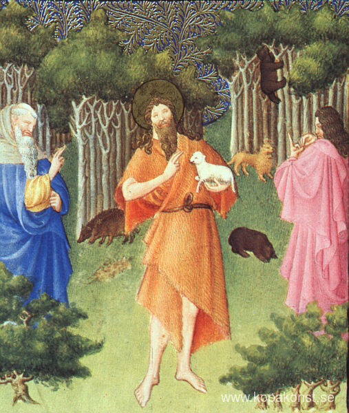 Vi erbjuder dig en hantverksmässig reproduktion på duk av det berömda konstverket 'Johannes Döparen i vildmarken' av Limbourg brothers, från Reproduktionsmuseet.