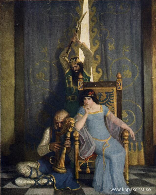 Vi erbjuder dig en hantverksmässig reproduktion på duk av det berömda konstverket 'Kung Mark dödade den ädle riddaren Sir Tristram' av N.C. Wyeth, från Reproduktionsmuseet.