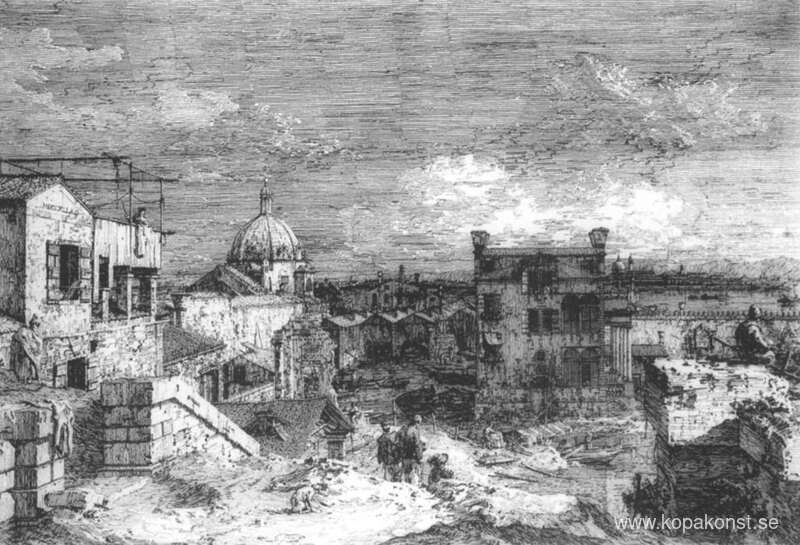 Vi erbjuder dig en hantverksmässig reproduktion på duk av det berömda konstverket 'Fantasifull utsikt över Venedig' av Canaletto, från Reproduktionsmuseet.