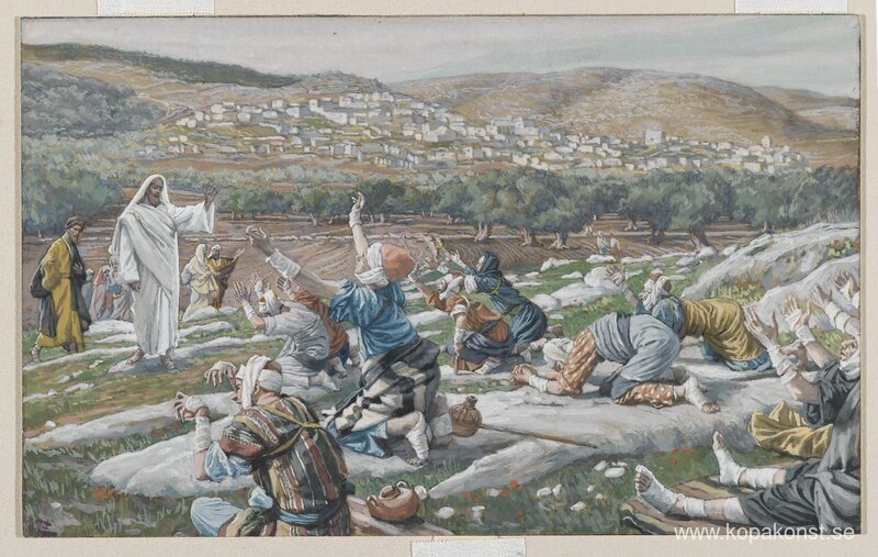 Vi erbjuder dig en hantverksmässig reproduktion på duk av det berömda konstverket 'Helande av tio spetälska (Guérison de dix lépreux)' av James Tissot, från Reproduktionsmuseet.