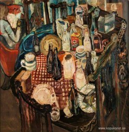 Självporträtt med ett staffli och ett plågsamt uttryck