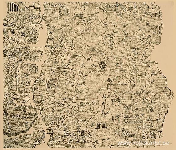 Vi erbjuder dig en hantverksmässig reproduktion på duk av det berömda konstverket 'Skiss för en världskarta del 1 (Amerika, Stilla havet)' av Oyvind Fahlstrom, från Reproduktionsmuseet.