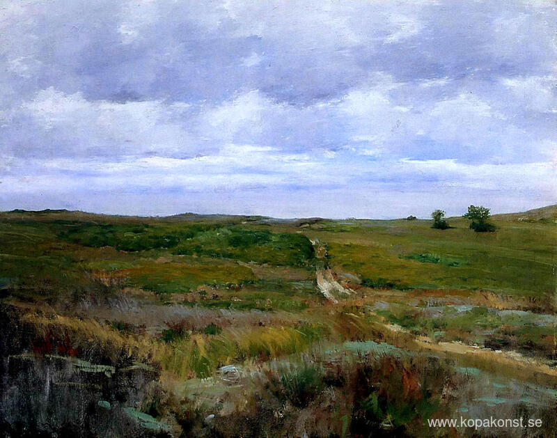 Vi erbjuder dig en hantverksmässig reproduktion på duk av det berömda konstverket 'Över kullarna och långt borta' av William Merritt Chase, från Reproduktionsmuseet.