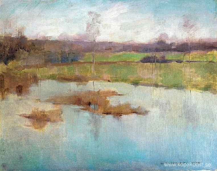 Vi erbjuder dig en hantverksmässig reproduktion på duk av det berömda konstverket 'Damm Giverny' av Willard Metcalf, från Reproduktionsmuseet.