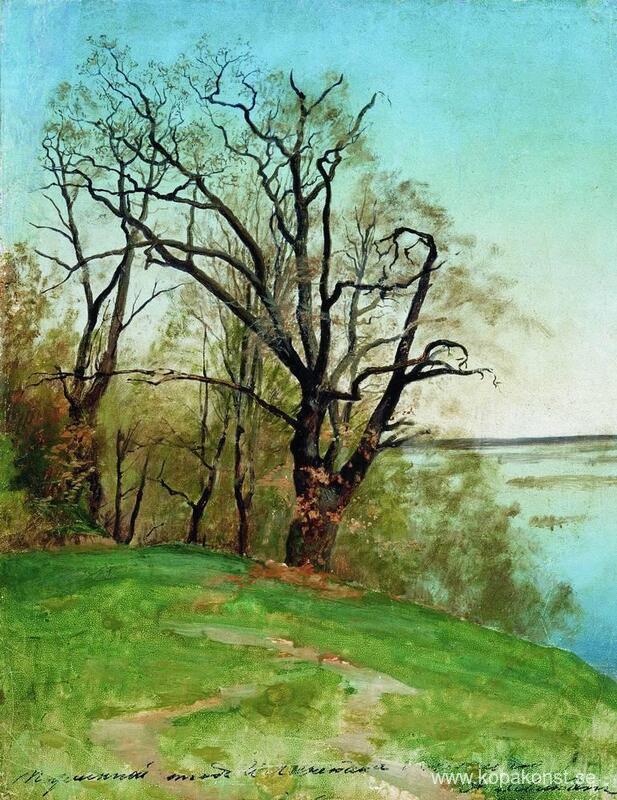 Vi erbjuder dig en hantverksmässig reproduktion på duk av det berömda konstverket 'Ek på flodstranden' av Isaac Levitan, från Reproduktionsmuseet.