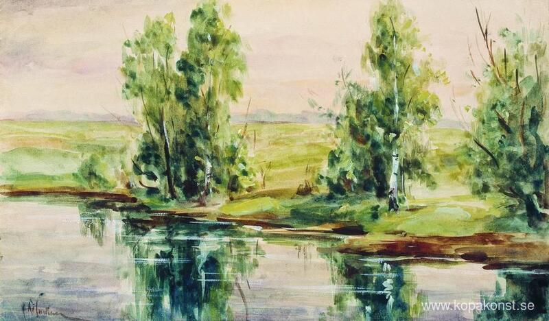 Vi erbjuder dig en hantverksmässig reproduktion på duk av det berömda konstverket 'En flod' av Isaac Levitan, från Reproduktionsmuseet.