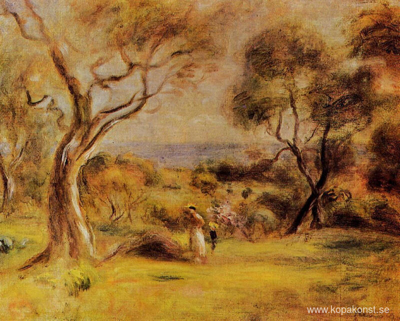 Vi erbjuder dig en hantverksmässig reproduktion på duk av det berömda konstverket 'En promenad vid havet' av Pierre-Auguste Renoir, från Reproduktionsmuseet.