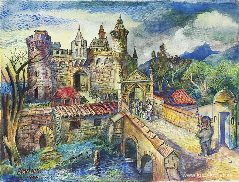 Vi erbjuder dig en hantverksmässig reproduktion på duk av det berömda konstverket 'Engelska slottet' av David Burliuk, från Reproduktionsmuseet.