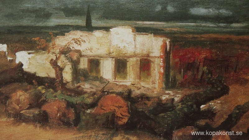Vi erbjuder dig en hantverksmässig reproduktion på duk av det berömda konstverket 'Förstört hus i Kehl' av Arnold Böcklin, från Reproduktionsmuseet.