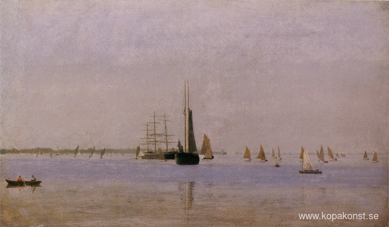 Vi erbjuder dig en hantverksmässig reproduktion på duk av det berömda konstverket 'Fartyg och segelbåtar på Delaware ' av Thomas Eakins, från Reproduktionsmuseet.