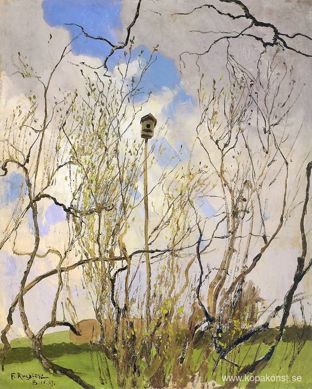 Vi erbjuder dig en hantverksmässig reproduktion på duk av det berömda konstverket 'Fjädra' av Ferdynand Ruszczyc, från Reproduktionsmuseet.