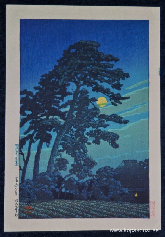 Vi erbjuder dig en hantverksmässig reproduktion på duk av det berömda konstverket 'Fullmåne i Magome' av Hasui Kawase, från Reproduktionsmuseet.