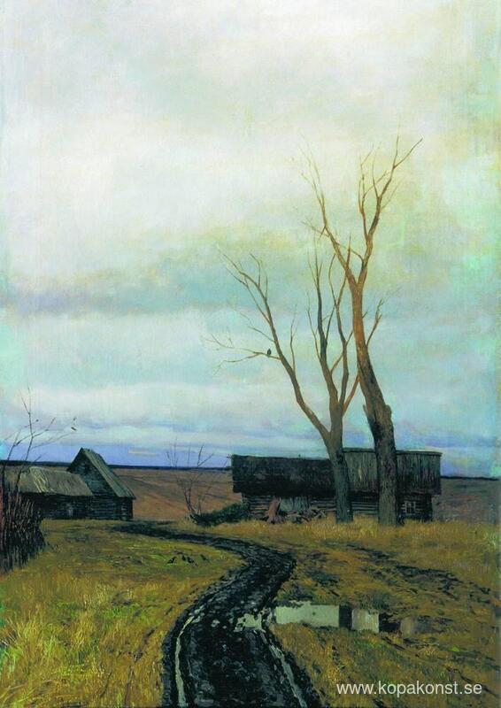Vi erbjuder dig en hantverksmässig reproduktion på duk av det berömda konstverket 'Höst. Vägen i en by.' av Isaac Levitan, från Reproduktionsmuseet.