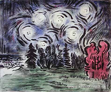 Vi erbjuder dig en hantverksmässig reproduktion på duk av det berömda konstverket 'Höstvind och stjärnor' av Karl Schrag, från Reproduktionsmuseet.