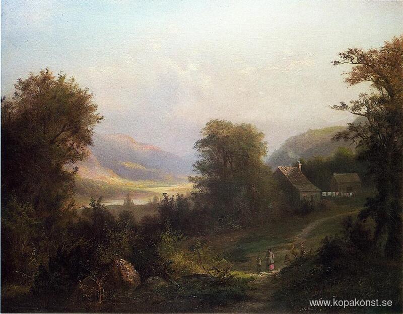 Vi erbjuder dig en hantverksmässig reproduktion på duk av det berömda konstverket 'Hudson River Scene ' av David Johnson, från Reproduktionsmuseet.