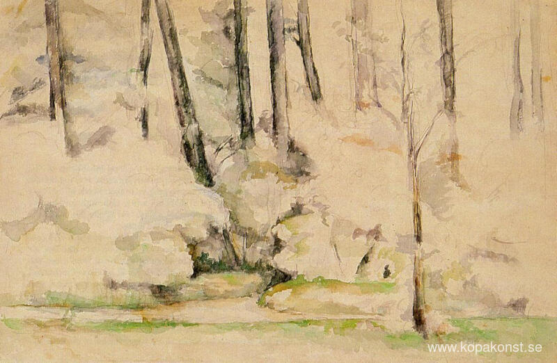 Vi erbjuder dig en hantverksmässig reproduktion på duk av det berömda konstverket 'I skogen' av Paul Cezanne, från Reproduktionsmuseet.