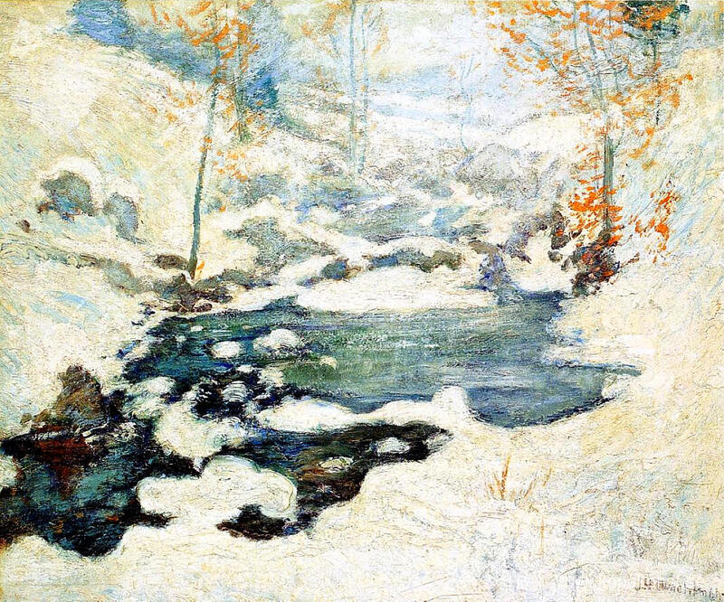 Vi erbjuder dig en hantverksmässig reproduktion på duk av det berömda konstverket 'Isbunden' av John Henry Twachtman, från Reproduktionsmuseet.
