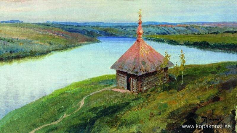 Vi erbjuder dig en hantverksmässig reproduktion på duk av det berömda konstverket 'Kapell på stranden av Oka' av Vasily Polenov, från Reproduktionsmuseet.