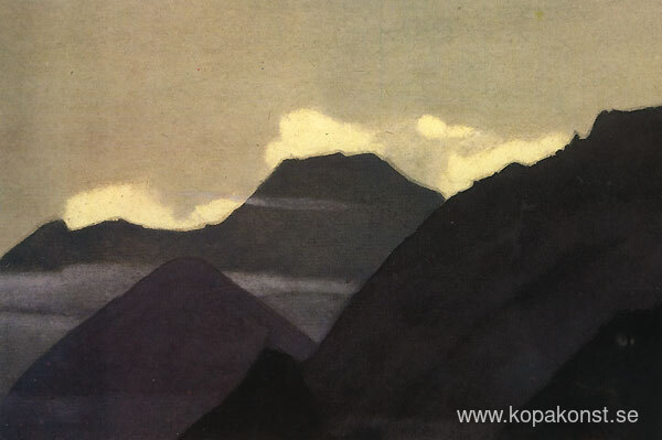 Vi erbjuder dig en hantverksmässig reproduktion på duk av det berömda konstverket 'Kuluta. Berg före solnedgången.' av Nicholas Roerich, från Reproduktionsmuseet.