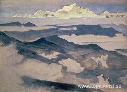 Vi erbjuder dig en hantverksmässig reproduktion på duk av det berömda konstverket 'Kväll' av Nicholas Roerich, från Reproduktionsmuseet.