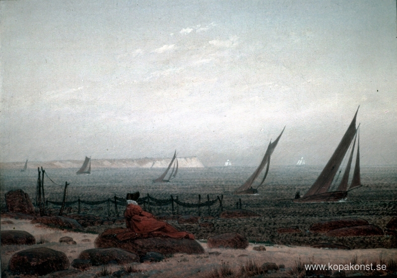 Vi erbjuder dig en hantverksmässig reproduktion på duk av det berömda konstverket 'Kvinna på stranden i Rügen' av Caspar David Friedrich, från Reproduktionsmuseet.