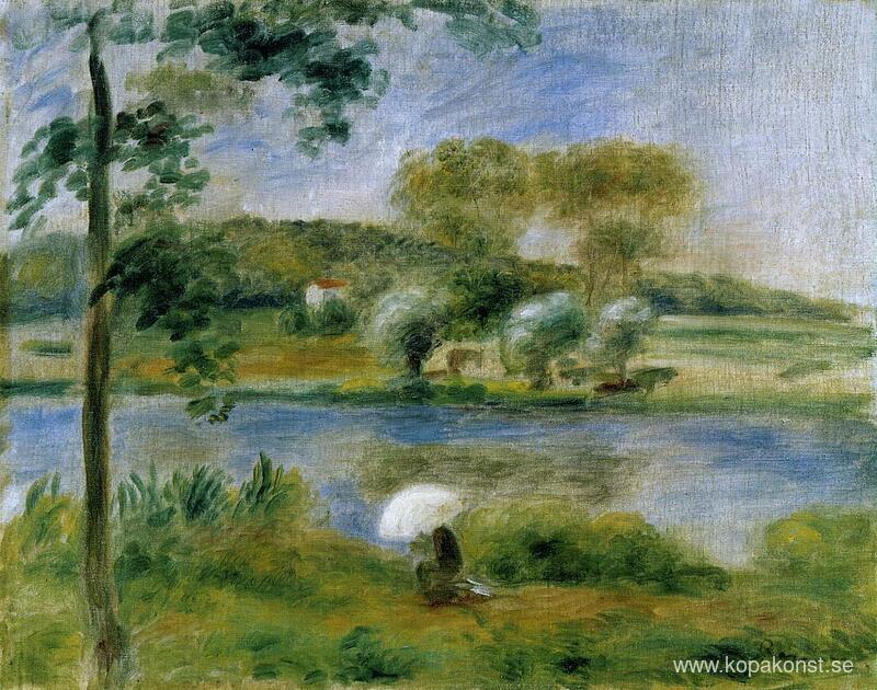 Vi erbjuder dig en hantverksmässig reproduktion på duk av det berömda konstverket 'Landskap flodens stränder' av Pierre-Auguste Renoir, från Reproduktionsmuseet.