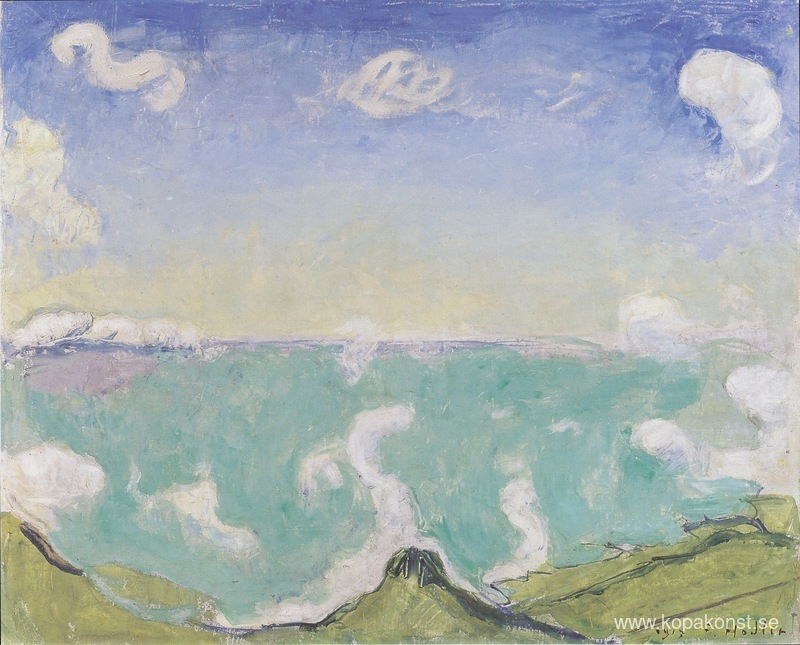 Vi erbjuder dig en hantverksmässig reproduktion på duk av det berömda konstverket 'Landskap i Caux med ökande moln' av Ferdinand Hodler, från Reproduktionsmuseet.