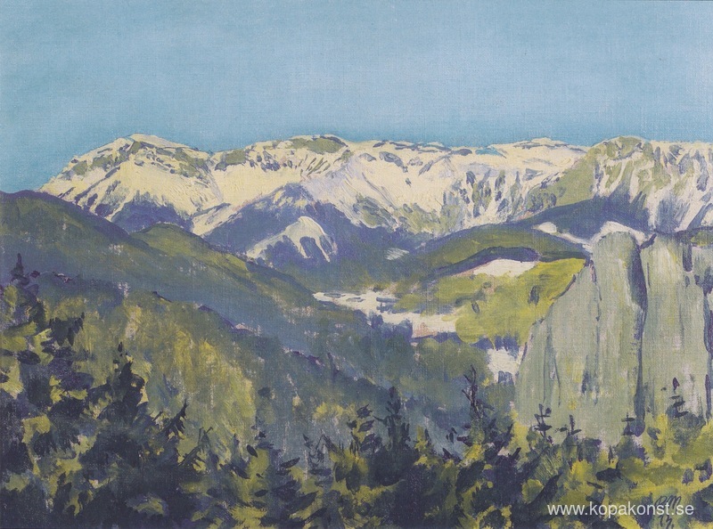 Vi erbjuder dig en hantverksmässig reproduktion på duk av det berömda konstverket 'Landskap i Semmering' av Koloman Moser, från Reproduktionsmuseet.