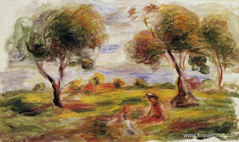Vi erbjuder dig en hantverksmässig reproduktion på duk av det berömda konstverket 'Landskap med figurer i Cagnes' av Pierre-Auguste Renoir, från Reproduktionsmuseet.