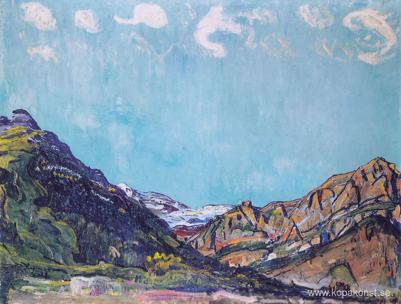 Vi erbjuder dig en hantverksmässig reproduktion på duk av det berömda konstverket 'Landskap nära Champery' av Ferdinand Hodler, från Reproduktionsmuseet.