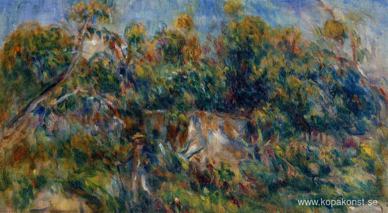 Vi erbjuder dig en hantverksmässig reproduktion på duk av det berömda konstverket 'Målaren tar en promenad i Cagnes' av Pierre-Auguste Renoir, från Reproduktionsmuseet.