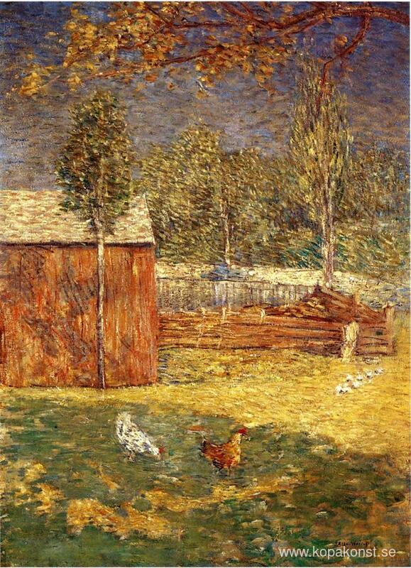 Vi erbjuder dig en hantverksmässig reproduktion på duk av det berömda konstverket 'Middag' av Julian Alden Weir, från Reproduktionsmuseet.