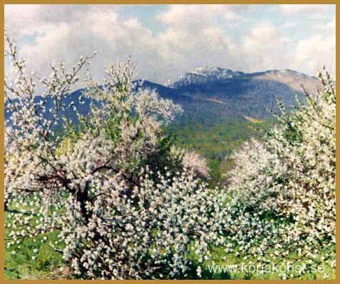 Vi erbjuder dig en hantverksmässig reproduktion på duk av det berömda konstverket 'Monadnock fruktträdgård' av Richard Whitney, från Reproduktionsmuseet.