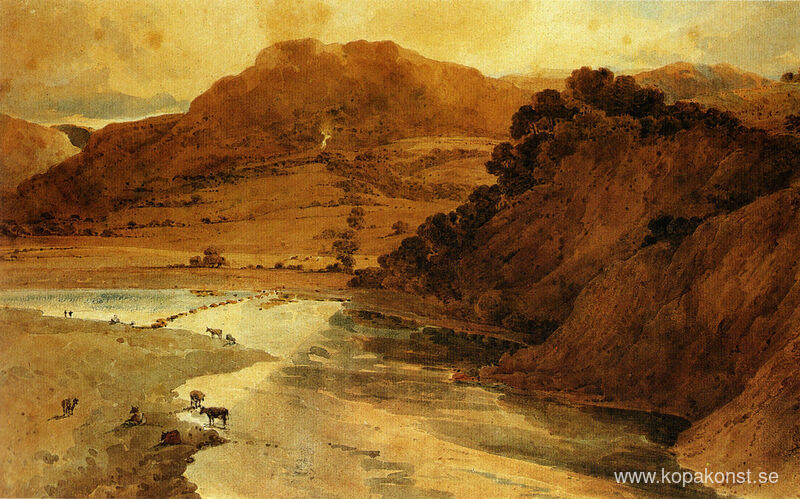Vi erbjuder dig en hantverksmässig reproduktion på duk av det berömda konstverket 'Nära Bolton Abbey, Yorkshire' av Thomas Girtin, från Reproduktionsmuseet.