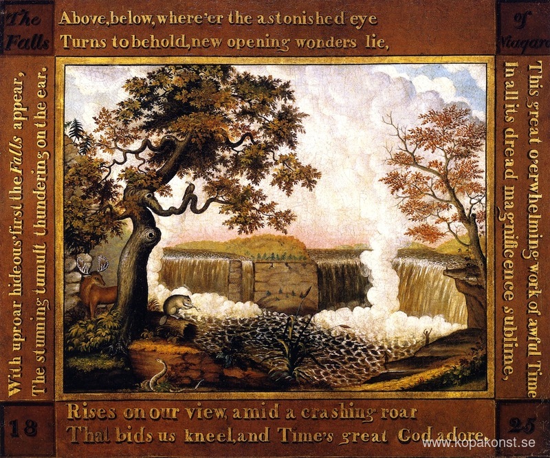 Vi erbjuder dig en hantverksmässig reproduktion på duk av det berömda konstverket 'Niagarafallen ' av Edward Hicks, från Reproduktionsmuseet.