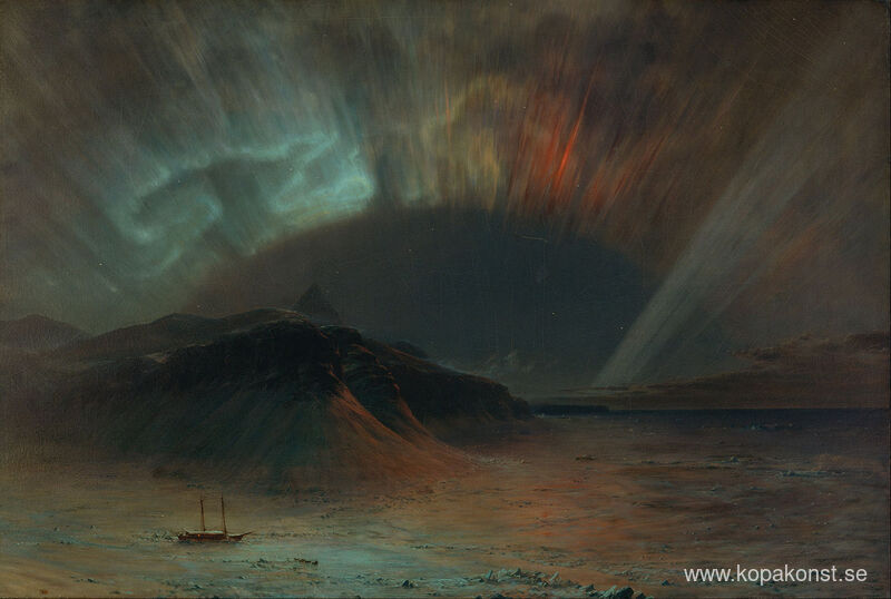 Vi erbjuder dig en hantverksmässig reproduktion på duk av det berömda konstverket 'Norrsken' av Frederic Edwin Church, från Reproduktionsmuseet.