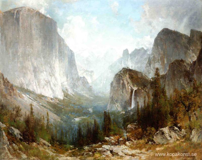 Vi erbjuder dig en hantverksmässig reproduktion på duk av det berömda konstverket 'Piute indianer vid portarna till Yosemite ' av Thomas Hill, från Reproduktionsmuseet.