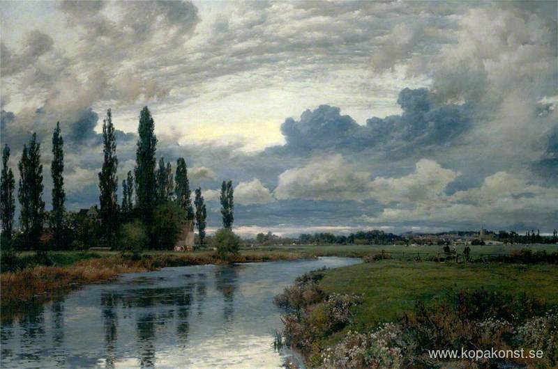 Vi erbjuder dig en hantverksmässig reproduktion på duk av det berömda konstverket 'Poplar i Thames Valley' av Alfred Parsons, från Reproduktionsmuseet.