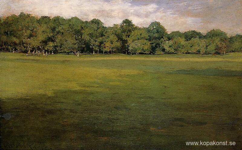Vi erbjuder dig en hantverksmässig reproduktion på duk av det berömda konstverket 'Prospect Park, aka Croquet Lawn Prospect Park' av William Merritt Chase, från Reproduktionsmuseet.