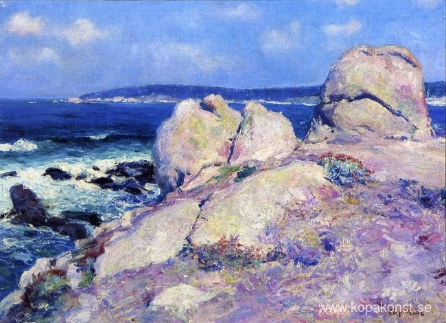 Vi erbjuder dig en hantverksmässig reproduktion på duk av det berömda konstverket 'Rocks Point Reamer' av Guy Rose, från Reproduktionsmuseet.