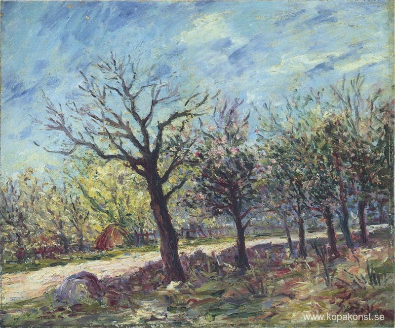 Vi erbjuder dig en hantverksmässig reproduktion på duk av det berömda konstverket 'Sablons på våren' av Alfred Sisley, från Reproduktionsmuseet.
