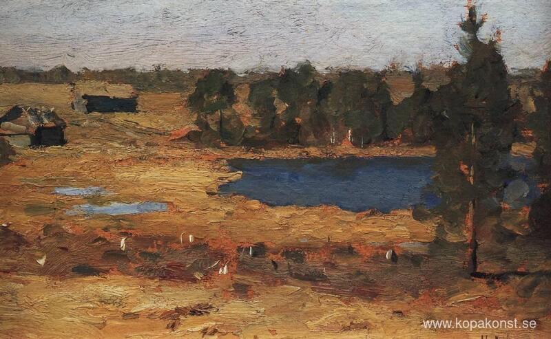 Vi erbjuder dig en hantverksmässig reproduktion på duk av det berömda konstverket 'Sjö. Ladugårdar i skogsbrynet.' av Isaac Levitan, från Reproduktionsmuseet.