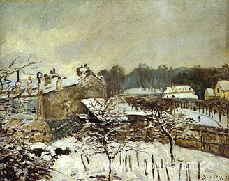 Vi erbjuder dig en hantverksmässig reproduktion på duk av det berömda konstverket 'Snöeffekt på Louveciennes' av Alfred Sisley, från Reproduktionsmuseet.