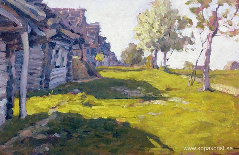 Vi erbjuder dig en hantverksmässig reproduktion på duk av det berömda konstverket 'Solig dag. En by' av Isaac Levitan, från Reproduktionsmuseet.