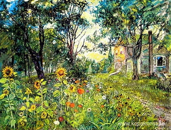 Vi erbjuder dig en hantverksmässig reproduktion på duk av det berömda konstverket 'Solrosor' av David Burliuk, från Reproduktionsmuseet.