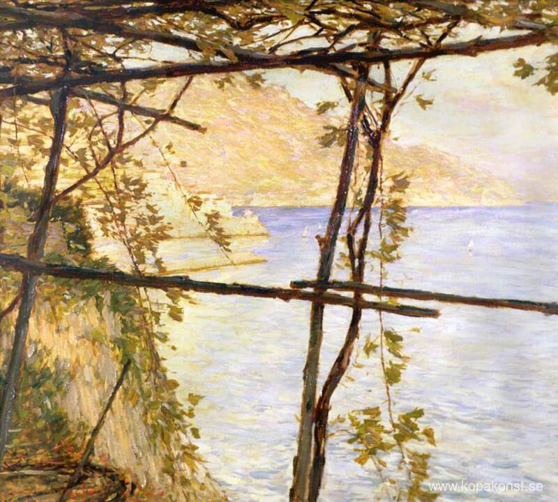 Vi erbjuder dig en hantverksmässig reproduktion på duk av det berömda konstverket 'Spaljerade Vines' av Henry Herbert La Thangue, från Reproduktionsmuseet.